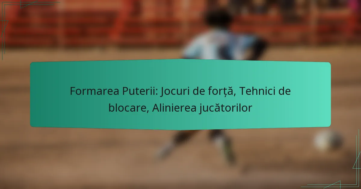 Formările de putere în sporturile de echipă aliniază strategic jucătorii pentru a spori forța și controlul în timpul jocului. Prin utilizarea jocurilor de forță și a tehnicilor eficiente de blocare, echipele pot crea situații avantajoase care facilitează manevrele ofensive și defensive de succes. Stăpânirea alinierii jucătorilor și a blocării este crucială pentru maximizarea performanței și protejarea purtătorului de minge.